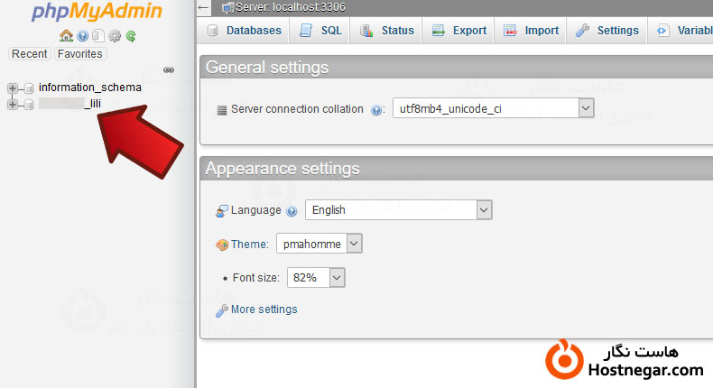در سمت چپ نام دیتابیسی که ایجاد کرده اید قابل مشاهده است روی نام دیتابیس مورد نظرتان کلیک کنید.