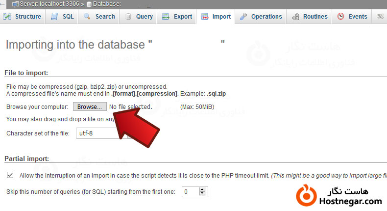 آموزش بازگردانی بکآپ دیتابیس از phpMyAdmin