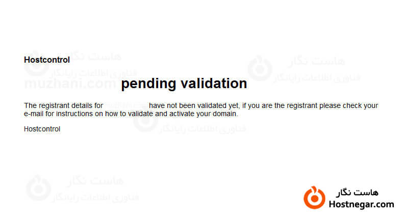 این پیام توسط هاست کنترل برای شما ارسال شده است و معنای آن این است که جزئیات ثبت دامنه مورد نظر شما در انتظار تایید است به دین منظور ایمیلی از سمت Hostcontrol به ایمیلی که دامنه را با آن ثبت نموده اید ارسال شده است ایمیل خود را برای آگاهی از تایید و فعال سازی دامین خود چک بفرمایید. ایمیل فوق به منظور تائید اطلاعات هویز شما می باشد و اخیرا بر اساس قوانین ICAN می بایست تمام کسانی که دامنه ثبت می نمایند جزئیات اطلاعات موجود در WHOIS دامنه ی خود را تائید نمایند.