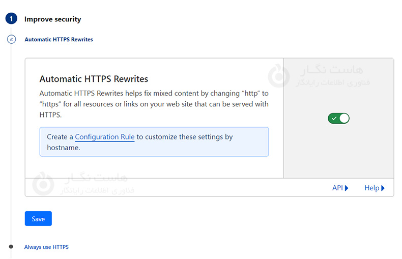 گزینه دوم Always Use HTTPS فعالسازی این گزینه باعث میشود که تمامی درخواست های http به https تبدیل شوند