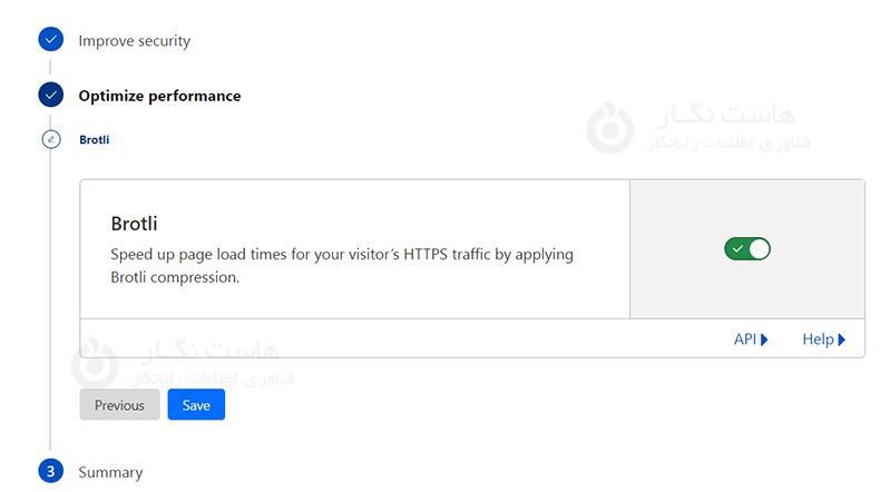Brotli یک الگوریتم فشردهسازی داده است که توسط گوگل توسعه داده شده است و برای کاهش حجم فایلهای وب استفاده میشود. این الگوریتم باعث فشردهسازی بهتر و کارآمدتری نسبت به الگوریتم gzip میشود، به طوری که میتواند حجم فایلها را به نسبت بیشتری کاهش دهد. حال Cloudflare از این الگوریتم به عنوان یکی از روشهای فشردهسازی محتوا برای کمک به افزایش سرعت بارگذاری صفحات وب استفاده میکند. و در صورتی که توسط کاربر پشتیبانی نشود همان الگوریتم gzip را فعال میکند.