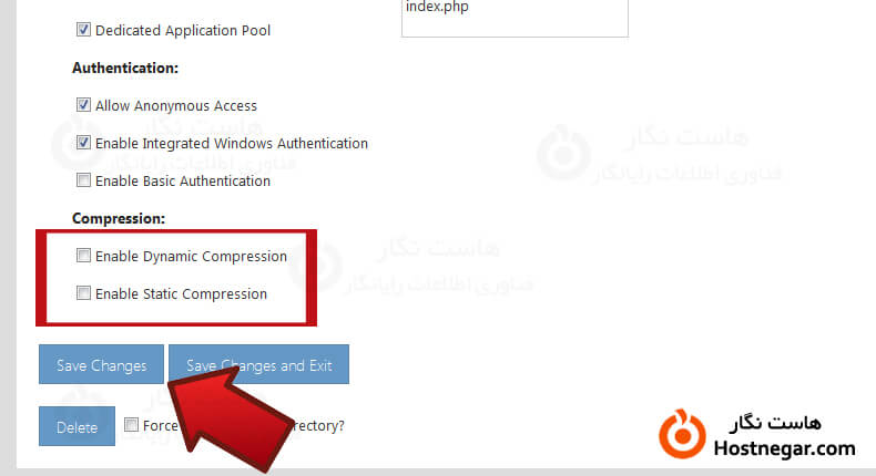 پس از ورود به صفحه Web Site Properties در انتهای صفحه تیک گزینه های Enable Dynamic Compression و Enable Static Compression را بزنید و بر روی دکمه ی Save Changes کلیک نمایید، با انجام مراحل ذکر شده GZIP در هاست شما فعال می شود .