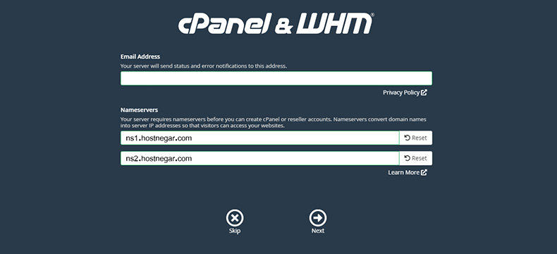 Cpanel برای نام میزبانی درخواست می کند که باید در قالب (FQDN) نام دامنه کاملاً واجد شرایط باشد. به عنوان مثال در این تاپیک از myeserver.mydomain.com استفاده می کنیم و به جای آن باید نام هاست خود را قرار دهید.