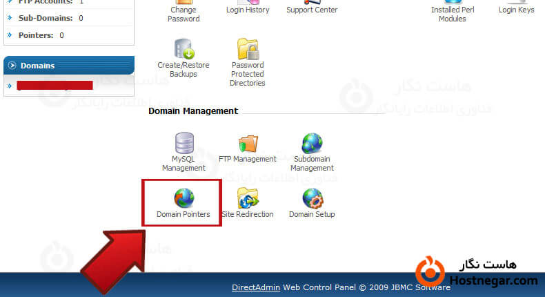 سپس از قسمت Domain Management گزینه Domain Pointers را انتخاب کنید.