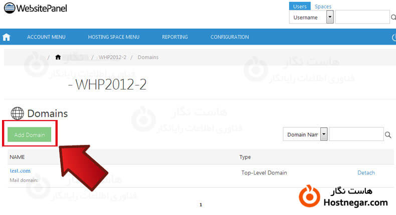 پس از ورود گزینه Add Domain قایل مشاهده است روی آن کلیک نمایید .