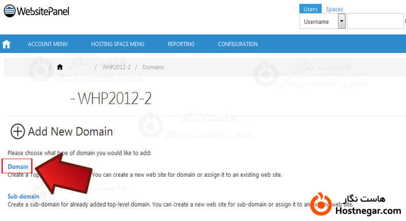 روی گزینه Domain کلیک نمایید .