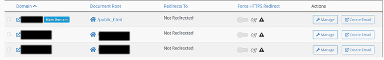 همچنین برای حذف کردن ریدایرکت یا دامنه پارک شده خود نیز میتوانید با زدن گزینه manage در کنار دامنه دلخواه کلیک بر روی Remove Domain این کار را انجام دهید.