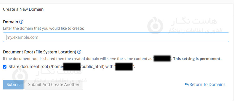 وارد صفحه زیر میشوید و میتوانید دامنه مورد نظر را وارد کنید همچنین تیک گزینه share document را در صورتی که نداشته باشد بزنید و سپس submit را کلیک نمایید تا پارک انجام شود. و به همین راحتی!!