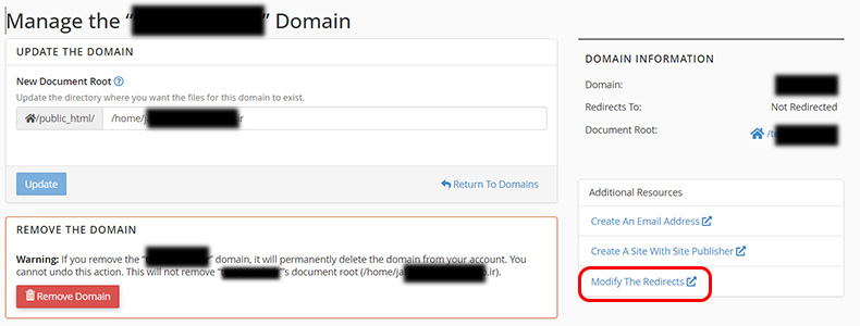 وارد صفحه زیر شده و بر روی Modfify The Redirects کلیک نمایید.