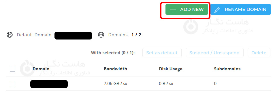 - در قسمت Domain نام دامنه خود را بدون www وارد نمایید.