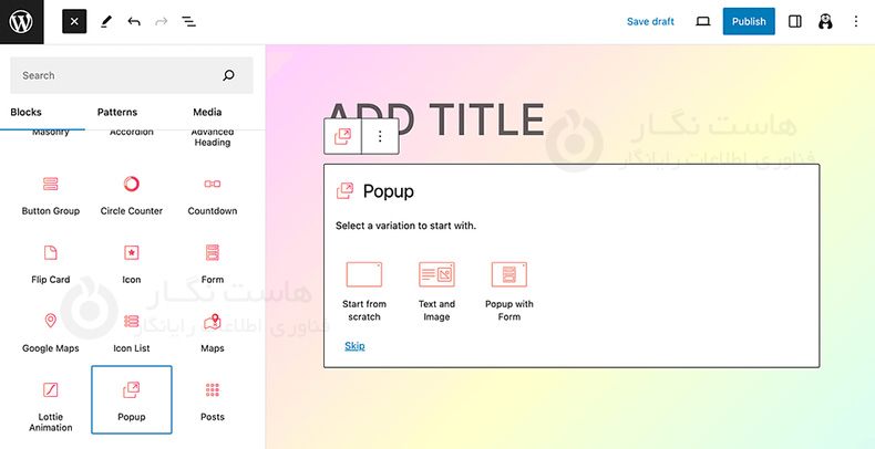 مرحله ۲: افزودن یک بلاک پاپ آپ به پست یا صفحه خود