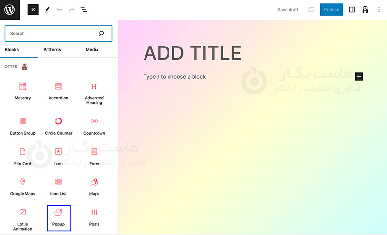 بعد از نصب و فعالسازی افزونه Otter Blocks، مرحله بعدی این است که یک بلاک پاپ آپ به صفحه یا پست مورد نظرتان اضافه کنید.