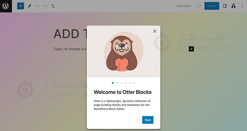 در این آموزش، از یک پست استفاده خواهد شد. هنگامی که بلاک ادیتور را بعد از نصب Otter Blocks باز میکنید، پیام خوش آمدگویی زیر نمایش داده میشود:
