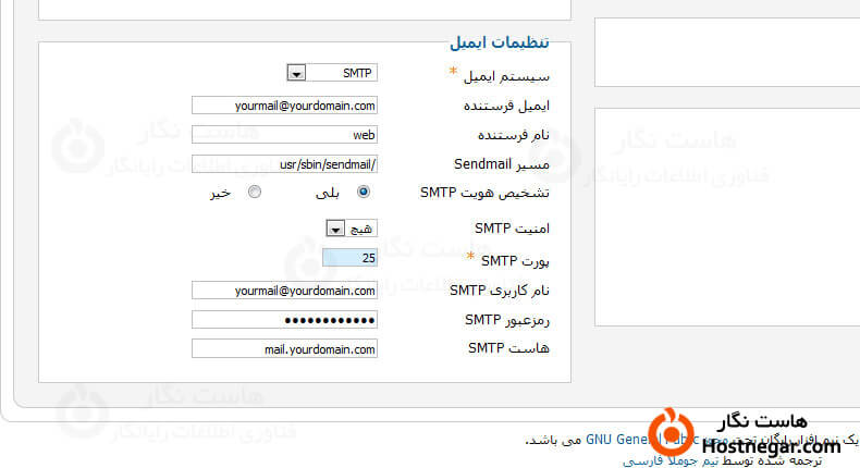 در قسمت تنظیمات ایمیل سیستم ایمیل را SMTP قرار دهید .