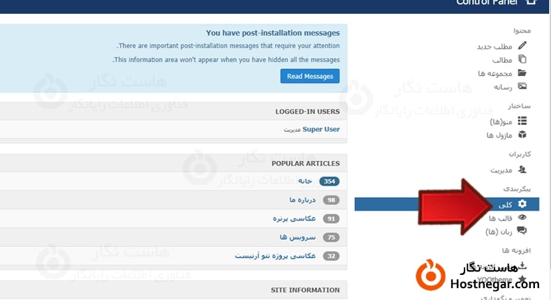 در نوار منو روی گزینه پیکربندی کلی کلیک کنید .