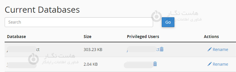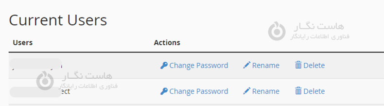 در زیر آن یوزرها یا کاربران دیتابیس و لینک هایی جهت تغییر رمز عبور کاربر را مشاهده خواهید کرد.