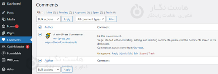 در وردپرس، می توانید به سادگی از داشبورد وردپرس خود به قسمت نظرات بروید و سپس نظر را به عنوان هرزنامه علامت گذاری کنید. همچنین می توانید گزینه Trash را انتخاب کرده و نظر را حذف کنید.