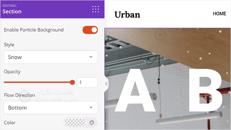 همچنین Opacity وجود دارد که میزان شفافیت انیمیشن را کنترل میکند، و Flow Direction که جهت حرکت ذرات را تنظیم میکند. برای برخی از استایلهای ذرهای، میتوانید رنگ آنها را نیز سفارشی کنید. اما برای کریسمس و هالووین، تنظیمات رنگ وجود ندارد، زیرا ذرات به شکل تصاویر هستند.