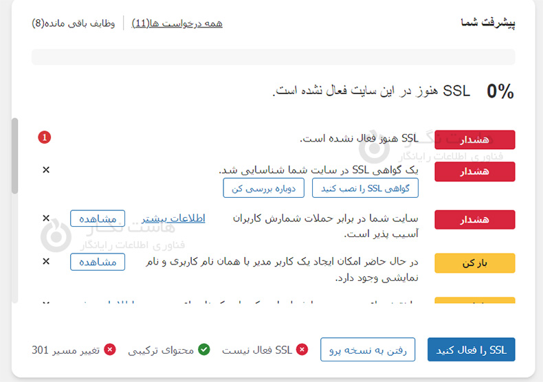گوگل هشدار اتصال امن را همچنان در بعضی قسمت ها میدهد زیرا سایت وردپرس شما هنوز شامل تصاویر یا رسانههای دیگری است که با استفاده از URL معمولی http:// درج شدهاند، نه URL جدید https:// شما. برای رفع مشکل، باید هر لینک تصویر را به https:// بهروزرسانی کنید.