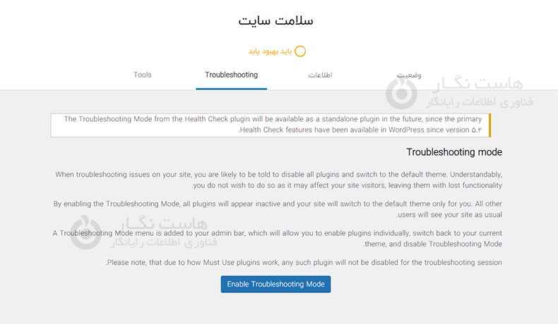 ابتدا باید افزونه Health Check & Troubleshooting را نصب و فعال کنید. در صورتی که برای نصب افزونه نیاز به راهنمایی بیشتری دارید میتوانید آموزش گام به گام نصب افزونه ما را مشاهده نمایید.