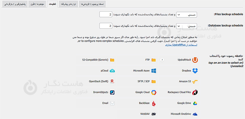 مرحله ۲: پیکربندی پشتیبان‌گیری‌های وردپرس رایگان