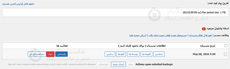 امیدواریم که این مقاله به شما کمک کرده باشد تا با افزونه و بدون دانش قبلی بکاپ مورد نیاز خود را تهیه کنید. برای دیدن باقی آموزش ها میتوانید وارد منوی پشتیبانی بخش آموزش ها شوید، در صورتی که درباره این آموزش به مشکل یا سوالی برخورد کردید، میتوانید آن را در بخش دیدگاه بیان کنید.