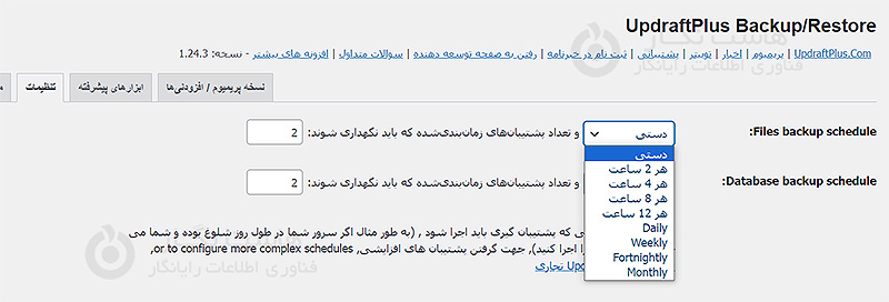 برای تنظیم زمان‌بندی پشتیبان‌گیری از فایل‌ها، روی منوی کشویی کنار آن کلیک کنید: