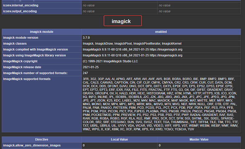به زودی خواهید دید که چگونه این کد PHP کوچک یک صفحه وب با تمام اطلاعات در مورد اکستنشن های PHP نصب شده و سایر تنظیمات ایجاد می کند. به پایین اسکرول کنید و بخش Imagick را پیدا کنید، اگر در آنجا است، به این معنی است که ماژول بارگذاری شده است و به خوبی کار می کند.