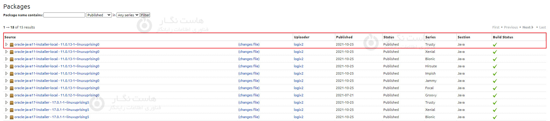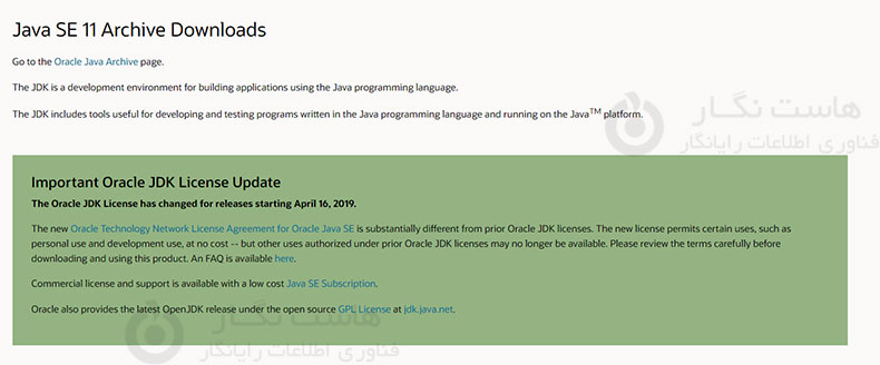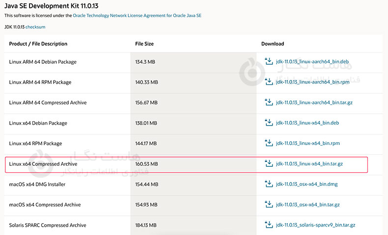 نسخه JDK Oracle که باید دانلود کنید باید با نسخه اسکریپت نصب کننده مطابقت داشته باشد. برای یافتن نسخه مورد نیاز خود، از صفحه oracle-java11-installer دیدن کنید. محل بسته بندی شما در شکل زیر می باشد: