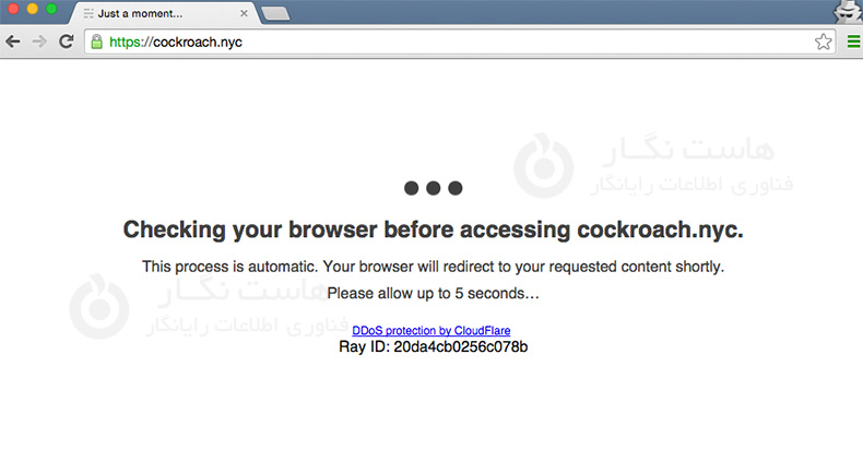 اگر این حالت را فعال کنید، هر بازدیدکننده از وبسایت شما با یک صفحه میانی روبرو خواهد شد که چندین بررسی مرورگری را انجام داده و باعث تأخیر 5 ثانیهای بازدیدکننده میشود پیش از اینکه آنها را به سرور شما منتقل کند. این صفحه ممکن است به این شکل باشد: