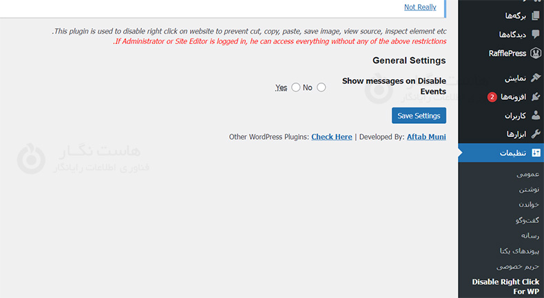 افزونه Disable Right Click For WP