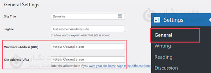 آدرس وردپرس جایی است که فایل ها و پوشه های وردپرس شما ذخیره می شوند. در مقابل، آدرس سایت به بخشی از وب سایت شما اشاره می کند که بازدیدکنندگان می بینند و با آن تعامل دارند. اگر به داشبورد مدیریت وردپرس دسترسی دارید، کافیست از نوار کناری مدیریت به صفحه تنظیمات » عمومی مراجعه کنید.