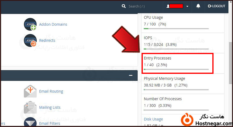 Entry Processes به تعداد پردازش های ورودی که به حساب سیپنل شما وارد می شود‚ گفته میشود.