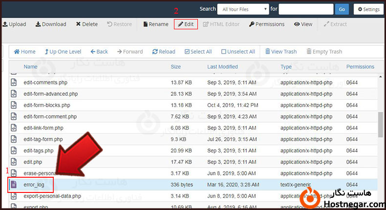 بررسی فایل Error log :میتوانید از طریق cPanel وارد File Manager شده و با Edit کردن فایل Error-log اگر خطایی در آن یافتید آن را ویرایش کنید.