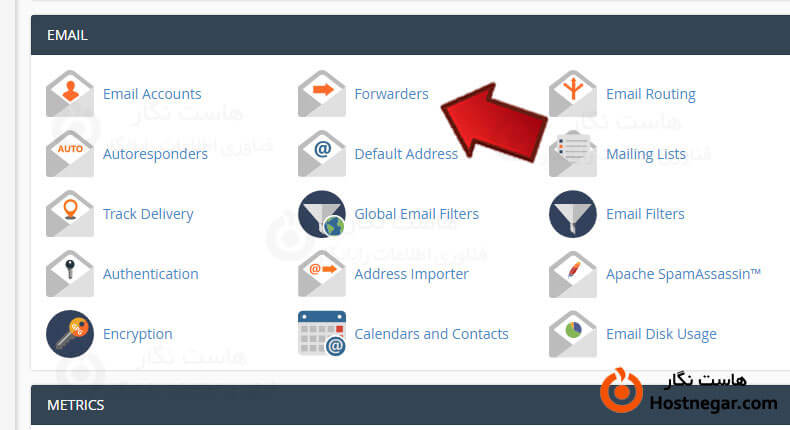 ابتدا وارد سی پنل شوید سپس از بخش EMAIL روی Forwarders کلیک کنید.