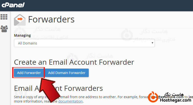 پس از ورود از قسمت Create an Email Account Forwarder روی گزینه Add Forwarder کلیک نمایید .