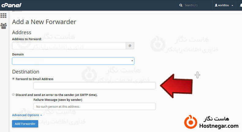 Forward to Email Address :آدرس ایمیل مورد نظر خود که از این پس تمایل دارید تمام ایمیل های اکانت سی پنل به آن ارسال شود را وارد کنید.