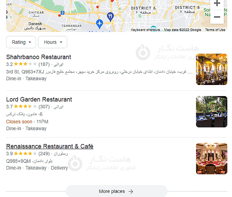 یک باکس همراه با نقشه که پایین آن سه نتیجه به همراه آدرس و احتمالا وبسایتشان حضور دارند. به این باکسهای محتوایی، لوکال پک (Local Pack) هم گفته میشود. در حقیقت هدف گوگل از این لوکال پکها، کلیک کمتر کاربر و گرفتن جواب و مشخصات و تمام اطلاعات لازم دیگر در همان صفحه نتایج است. اتفاقی که برای کاربران خوش آیند و برای برخی از صاحبان کسب و کارها، خیلی هم خوش آیند نیست.