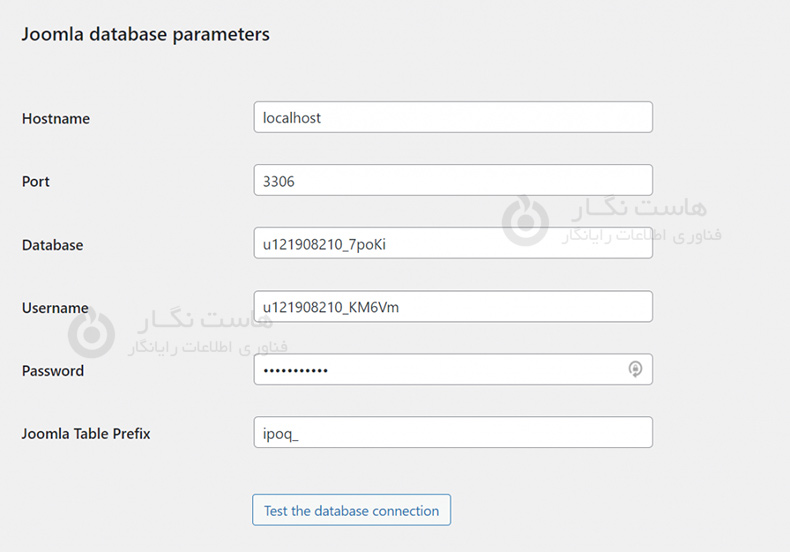 به قسمت پارامترهای پایگاه داده جوملا به پایین بروید. اینجا جایی است که از مقادیر پیشوند میزبان، نام پایگاه داده، نام کاربری پایگاه داده، رمز عبور پایگاه داده و جداول پایگاه داده در مرحله قبل استفاده خواهید کرد.