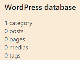 برای شروع حذف، دکمه Empty WordPress content را فشار دهید. اگر فرآیند موفقیت آمیز باشد، بخش پایگاه داده وردپرس به شکل زیر خواهد بود: