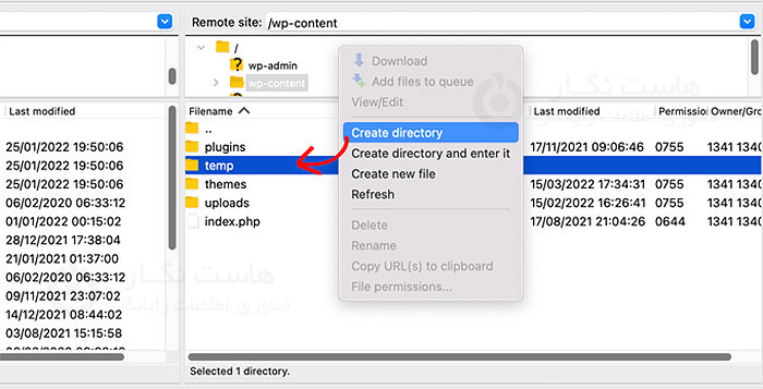 در مرحله بعد، باید به /wp-content/folder بروید و یک پوشه جدید در داخل آن ایجاد کنید. شما باید این پوشه جدید را temp نامگذاری کنید.