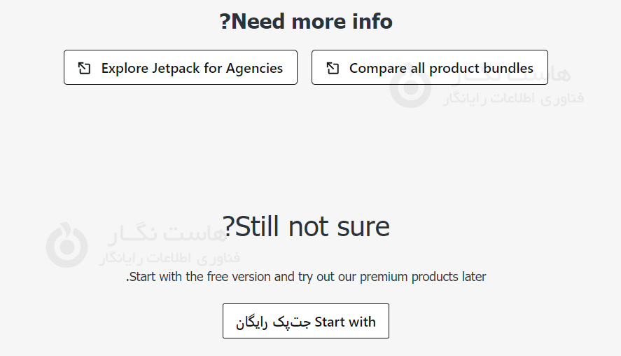 پس از اتصال، برای ادامه روی دکمه Start with جت پک رایگان کلیک کنید (نیازی به پرداخت هزینه برای قابلیت اشتراک گذاری ندارید). اکنون به وبسایت خود بازگردانده میشوید، جایی که میبینید یک منوی Jetpack به داشبورد وردپرس شما اضافه شده است.
