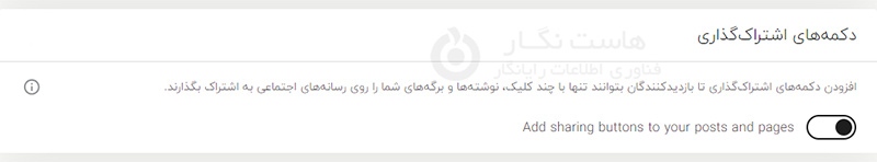 برای فعال کردن دکمه های اشتراک گذاری، به Jetpack > تنظیمات > اشتراک گذاری بروید. و در اینجا در زیر دکمههای اشتراکگذاری، دکمه افزودن دکمههای اشتراکگذاری به پستهای خود را روشن کنید.