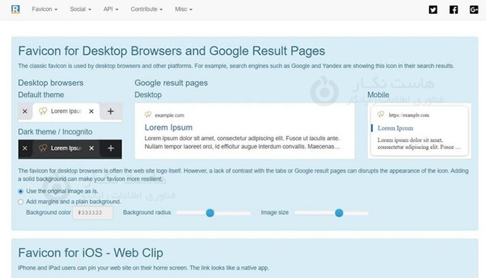 افزونه به طور خودکار شما را به وب سایت برنامه هدایت می کند. به محض اینکه favicon خود را آپلود کردید، این فرصت را خواهید داشت که آن را ویرایش کنید. اگر میخواهید ظاهر favicon خود را برای مرورگرهای دسکتاپ، نتایج جستجوی Google یا گوشیهای هوشمند مختلف تطبیق دهید، از این ویژگیها استفاده کنید.