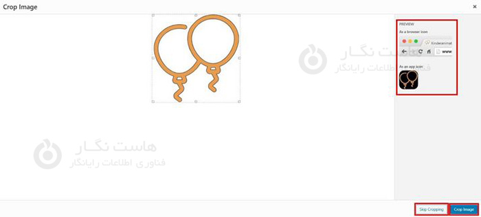 سپس میتوانید تصویری را که انتخاب کرده اید برش دهید. وردپرس به طور خودکار پیش نمایشی از favicon شما را در منوی سمت راست نشان می دهد. به محض اینکه برش را تمام کردید، انتخاب خود را با کلیک بر روی «برش تصویر» تأیید کنید. اگر اندازه تصویر شما قبلاً درست است، به سادگی بر روی "Skip Cropping" کلیک کنید.