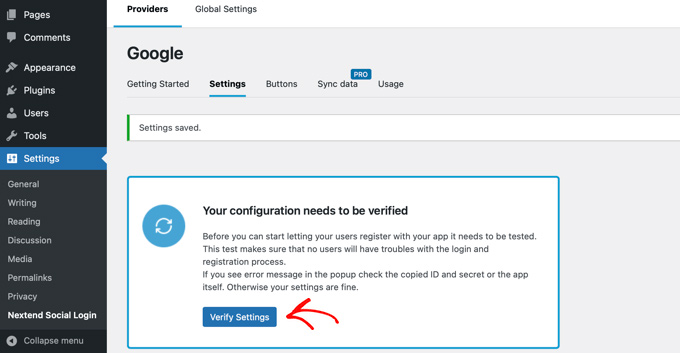 به سادگی روی دکمه "Verify Settings" کلیک کنید و افزونه مطمئن می شود که برنامه Google که ایجاد کرده اید به درستی کار می کند.