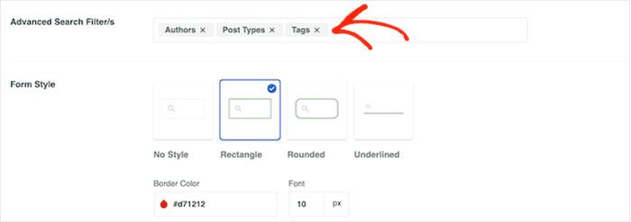 بسته به طرحبندی و نوع فرمی که میخواهید ایجاد کنید، ممکن است لازم باشد برخی از تنظیمات «Custom Styling» را فعال و غیرفعال کنید. به عنوان مثال، اگر می خواهید فرمی ایجاد کنید که بر اساس دسته بندی جستجو می کند، برای فعال کردن کلید «Custom Styling» کلیک کنید.