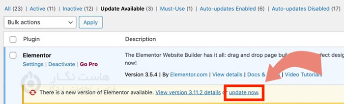 برای هر افزونه قدیمی روی «update now» کلیک کنید.