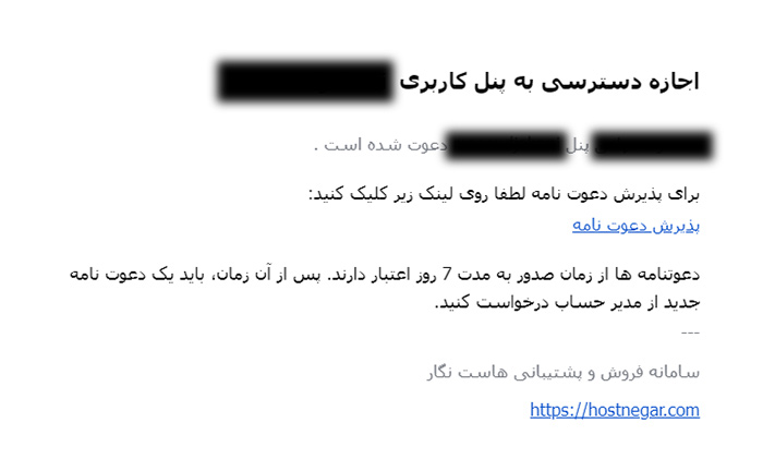 با کلیک بر روی لینک "پذیرش دعوتنامه" به صفحه ای در هاست نگار منتقل خواهید شد:
