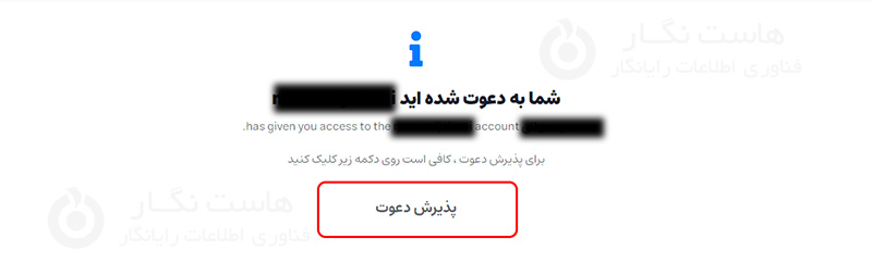 با کلیک بر روی پذیرش دعوت شخص دعوت شده با سطح دسترسیی که مشخص کرده اید وارد حساب شما میشود.